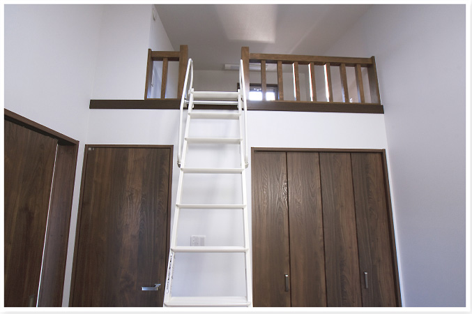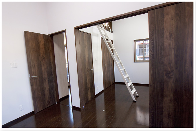| 階段を上がると、子供はもちろん大人心までくすぐる楽しい間取り。こちらの部屋は上吊り引戸を開け放てば、 |