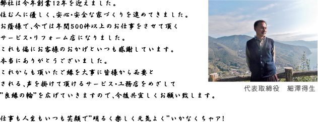 | 代 表 | 代表取締役 細澤得生 |