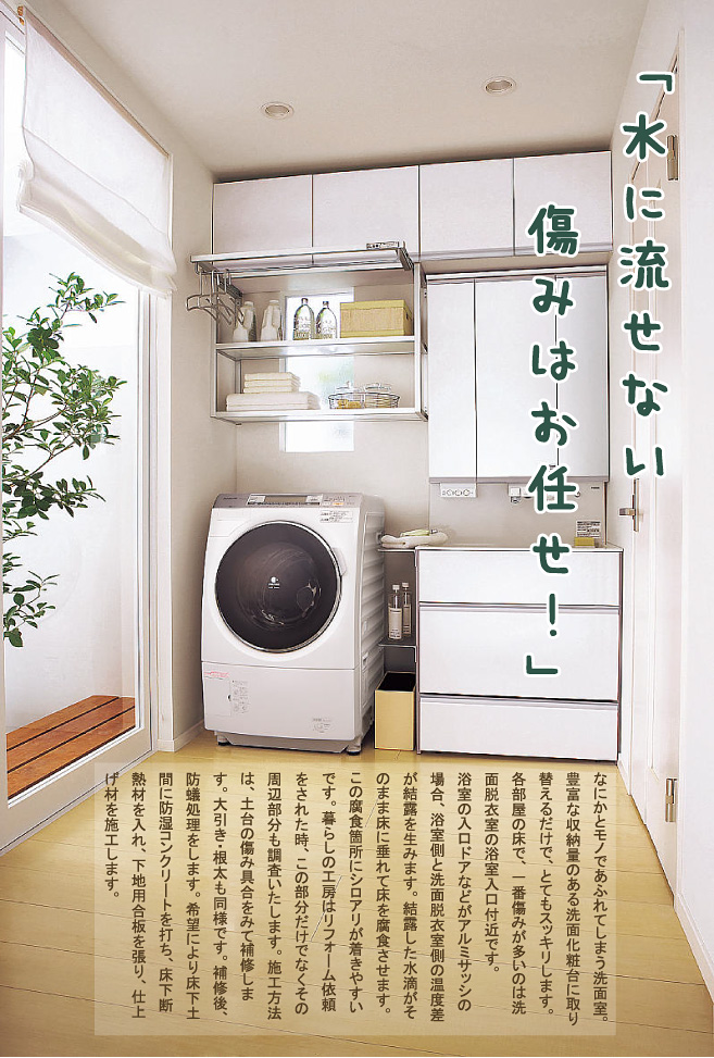 毎日使用しているのに、つい見逃してしまいます。洗面化粧台と洗濯機を使いやすく便利に配置すれば、